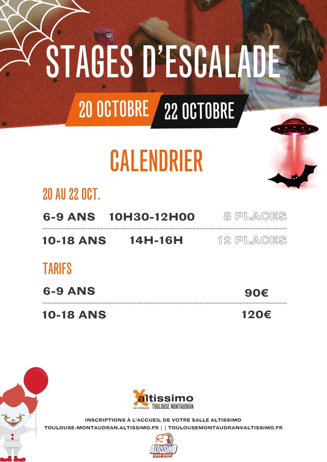 Votre salle d'escalade Altissimo Toulouse Montaudran propose un stage durant la période des vacances de la Toussaint 2025.